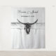 Espetáculo de recepção de casamento fotobodô roxo branco-preto da Rússia, do crânio de vaca-caubói-branco-preto. Vintage farm imprimiu uma faixa de textura angustiada para os recém-casados. Antiguidade do estilo Oeste selvagem. design de animais legal, moderno e moderno. Personalize seu script. Imagem copyright Marg Seregelyi Fotografia.