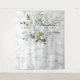 Crie as fotos perfeitas para o seu casamento botânico boêmio moderno, com este lindo tapete de fundo aquarelado botânico com eucalipto verde-azulado claro, apresentando um fundo falso de mármore Carrera, respingo de aquarela e tipografia de letra manuscrita na moda. Parte de um conjunto de convite de casamento. Copyright Elegant Invites, todos os direitos reservados.