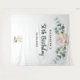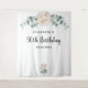 Estilo floral elegante, clássico e moderno 50º (ou qualquer idade (faixa de festa de aniversário, tapeçaria). Decorados com peões brancos e aquosos, flores florais e verde de eucalipto. Com o texto: 50º Aniversário escrito com um roteiro de estilo grande e moderno, escrito a preto, escrito à mão. Personalize e adicione um nome e uma data. Pode ser usado como uma faixa de boas-vindas, decor de parede para a festa ou como um pano de fundo fotográfico.