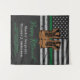 Adicione o toque final ao seu partido militar de aposentadoria com estas finas faixas e suprimentos de festas de design vestido e aflitos. Bandeira americana em cores militares design. Esta faixa rústica de linha verde é perfeita para uma festa de aposentadoria militar, destacamentos militares são enviados, bem-vindos militares à comemoração de casa, graduação militar, e soldados indo embora. Perfeito para todos os militares, militares, proteção de fronteiras, patrulha de fronteira, oficial de conservação, guarda florestal, diretor de jogos, polícia federal. Personalize este convite da bandeira americana com o nome dos soldados e a mensagem pessoal. Veja nossa coleção para combinar presentes de aposentadoria militar, presentes de graduação militar, favoritos para festas e suprimentos. COPYRIGHT © 2021 Judy Burrows, Black Dog Art - Todos Os Direitos Reservados. Tapeçaria do Exército do Couro da Linha Verde com Reforma Militar