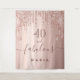 Uma moda e aniversário de 40 anos glamourosa. Um fundo de cor ouro rosa, giro, decorado com rosa dourado e brilho rosado, pintura pingando. Com o texto: 40 e fabuloso. Personalize e adicione um nome. Texto castanho colorido. A palavra Fabuloso é escrita com um moderno estilo escrito à mão com traços.