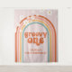Placa de festa de 1º aniversário Groovy One Arco-íris Retro com margaridas boho.