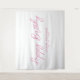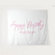 Crie sua própria tapeçaria de aniversário personalizada com caligrafia moderna de feliz aniversário e design de nome e data com tipografia minimalista para decoração de aniversário personalizada.