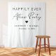 Boas-vindas à recepção de casamento branca Chic e tapeçaria com fotos mostrando "Felizmente Sempre Depois da Festa" em uma simples tipografia e um roteiro moderno para na moda, um coração e seus nomes e data de recepção.