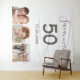 Para uma festa de 50 anos (ou qualquer idade). Uma colagem de 3 fotos suas com amigos, familiares, interesses ou animais de estimação. Um fundo branco chic. Personalize e adicione o nome dela, idade 50 e uma data. Data de nascimento ou data da festa de aniversário. Texto cinza.