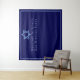 Esta tapeçaria de fundo para cabine de fotos de festa de Bat Mitzvah azul royal tem um belo desenho artístico da Estrela de Davi no topo. Complete a decoração com o seu nome personalizado no fundo branco.