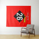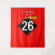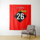 Decoração de fundo com foto de festa de formatura criativa para formandos da Classe '25 com boné preto e ouro sobre fundo vermelho.