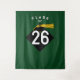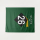 Decoração criativa de fundo para fotos de festa de formatura para graduados da turma de '26 com chapéu preto e dourado em fundo verde.