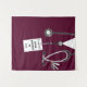 Criativa de formatura em enfermeiras decoração de festas de pano-de-fundo para comemoração de formando escolares de enfermagem com esfregões de hospital de marrom, estetoscópio e arte engraçada de faca do exército suíço. Edite texto para adicionar nome de enfermeira, ano e suas credenciais médicas.