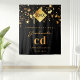 Um fundo preto chique. Decorado com estrelas douradas e um top de touca de graduação dourado falso moderno e abstrato, com o ano dentro. Texto: Parabéns! e Graduado. Personalize e adicione um ano, iniciais do monograma, nome e nome da escola. Para ele e para ela. Uma faixa, decoração de festa ou cabine de fotos, fundo para uma festa de formatura de 20xx (ou qualquer ano).