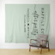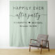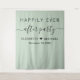 Tapeçaria de fundo de fotografia de recepção de casamento ou festa minimalista em verde sage com "Festa Feliz para Sempre" em uma mistura de tipografia simples e um script moderno com floreios, seus primeiros nomes e a data do evento.