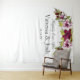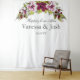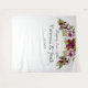 Este design foi criado para o casal elegante e sofisticado que ama detalhes ousados e ainda assim clássicos. As flores neste design são luxuosas. Na base do arranjo floral estão vibrantes folhas de eucalipto e samambaia verdes segurando lindas flores grandes e frutas delicadamente pintadas em uma rica cor de amora, combinadas com magnólias brancas sombreada com a mesma cor de fruta. Este lindo fundo de parede fotográfico tem esses belos arranjos florais arqueados no topo, aninhando a tipografia personalizável "Felicidade Eterna", os nomes dos noivos e a data do evento. A fonte de caligrafia inglesa dá a ele os toques finais de elegância.