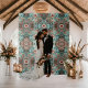 Faça uma declaração impressionante com o Fundo Floral Formal de Cobre e Turquesa Elegante, um design produzido por IA digitalmente editado que combina sotaques florais de cobre luxuosos com um fundo turquesa rico. Este cenário sofisticado é perfeito para cerimônias de casamento, recepções, cabines fotográficas, mesas de doçura e entradas de eventos, acrescentando um toque elegante e refinado à sua celebração. Projetado para casamentos formais, boho, rústicos e de destino, este pano de fundo melhora seu local com detalhes florais opulentes e estética de eterno. Quer você o use como um ponto focal cerimonial, decoração de entrada grandiosa ou fotografia, ele cria uma atmosfera perfeita para seu dia especial.