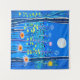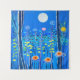 Tapeçaria em uma cena de fantasia de flores silvestres na floresta, sob a lua de cheio, em azul-noite e turquesa