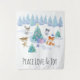Tapeçaria dizendo: Paz amor e alegria. Projetado com uma cena de Natal caprichosa. Felizes animais florestais dançando em volta de uma árvore de Natal decorada. Design de aquarela festiva.