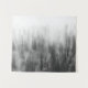 Esta foto preto e branco caracteriza uma floresta coberta na névoa.