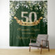Tapeçaria de fundo de festa de aniversário de 50 anos com folhagem boho verde e dourado, banner de festa com folhas verdes frescas e brilhos dourados. Fácil de personalizar, entre em contato para outra IDADE ou para personalização. Rosas Cor de Rosa ©