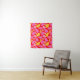 Folhas de outono. Folhas cor-de-rosa, amarela, laranja sobre um fundo vermelho vivo.