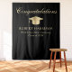 Elegante festa de formatura negra de boas-vindas tapeçaria e desenho fotográfico com boné de ouro, "Parabéns" em um clássico roteiro de caligrafia em ouro e o nome do formando, escola e ano de aula em tipografia de ouro moderna.