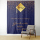 Um fundo azul marinho. Decorado com o ouro confetti e um boné de ouro moderno, abstrato faux, chapéu, tassel com o dentro do ano. Texto: Parabéns! O texto: Formando, e o nome são escritos com um grande script estilo escrito à mão. Para ele e para ela. Uma faixa, decoração de festas, ou cabine de fotos, pano de fundo para uma festa de formatura de 2022, ou qualquer ano.