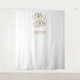 Esta magnífica tapeçaria mostra o Sr. e a Sra. em graciosa cursiva, juntamente com o nome da família do casal e a data do casamento em negrito dourado em um fundo branco limpo. É um pano de fundo perfeito para capturar momentos de casamento de eterno ou como elemento decorativo em fotos recém-casadas.