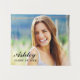 Exiba uma foto personalizada do seu graduado do ensino médio ou faculdade com estilo com este tapete de parede / letreiro de festa de graduação. O design simples e minimalista apresenta uma foto do graduado, acentuada com uma sobreposição de texto em script moderno e elegante com o nome do graduado e o ano da turma. A cor do texto preto e os estilos de fonte podem ser modificados.