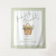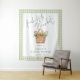 Fresh off the Market Sage Gingham Welcome sign. The words Fresh off the Market are in a Non Editable modern script. Easily edit the rest of the text as required. With a watercolor illustration of a wicker basket of produce and sage green gingham background.