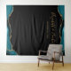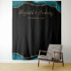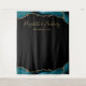 Esta elegante tapeçaria de cabine de fotos de casamento apresenta uma fronteira de ágata turquesa e dourada na parte superior e inferior em um fundo preto. Personalize-o com os nomes da noiva e do noivo em fonte de letra manuscrita dourada seguida pela data.