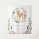 Este design elegante apresenta ilustração de um adorável cervo bebê, rosas cor-de-rosa e folhagens modernas em aquarela em verde suave e dourado. Personalize a tapeçaria com sua própria mensagem clicando no botão "Personalizar".