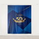 Tapeçaria de banner de fundo de aniversário de 50 anos moderno e sofisticado azul real, Contate-me para outras idades. Rosas Rosadas ©