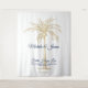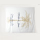 Personalize este lindo fundo de photobooth de casamento tropical em azul marinho e dourado com o seu toque especial. Esta bela tapeçaria apresenta os nomes dos noivos, data do casamento e as palavras "Fé, Esperança, Amor, mas o maior deles é o amor. 1 Coríntios 13:13" em tipografia de letra moderna. Se precisar de ajuda ou itens correspondentes, por favor entre em contato.
