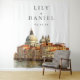 Este requintado pano de fundo para cabine de fotos de casamento com a silhueta de Veneza em aquarela pode ser personalizado com suas informações em tipografia moderna. Criado por Thisisnotme©