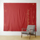 Tapeçaria fundo de cena para foto de casamento com flores de cerejeira vermelhas e douradas.