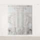 Fundo de cenário pendurado em ouro, prata, cinza e branco para cabine de fotos de recepção de casamento. Design de texto simples e elegante pode ser personalizado. Direitos autorais da imagem Marg Seregelyi Photography.