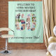 Crie sua própria colagem de fotos nesta tapeçaria verde menta para uma festa de 60 anos. Estes enfeites de parede são ótimos para servir de fundo, placa de boas-vindas ou fotobooth. O modelo está configurado para você adicionar suas próprias fotografias, que automaticamente formam o número 60. A tipografia combina letras em negrito e cursivas em cinza escuro. A redação da amostra lê "Boas-vindas ao aniversário de 60 anos de [nome]" no topo e "Incrível desde 19xx!". Por favor, explore nossa loja para encontrar presentes e cartões de aniversário de 60 anos coordenados.