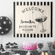 Pano de fundo personalizado para festa de solteira retrô é o tapete perfeito para festa de solteira em preto e creme com um copo de coquetel é perfeito como fundo de fotos para festa de solteira. Celebre seu chá de panela com estilo com o tema de festa de coquetel ousado em rosa, o tema perfeito para a noiva vintage nostálgica dos anos 70 e suas damas de honra.