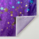 Fundo de faturas violetas com estrelas douradas e azuis. Fundo com estrelas.