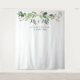 Um belo fundo de foto ou adereço para cabine de fotos para o seu casamento, apresentando um arranjo em aquarela de galhos de eucalipto verde, "Sr. & Sra." em fonte cursiva cinza escuro, personalizado com seus nomes e data de casamento.
