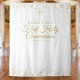 Fundo de cabine de fotos da primeira comunhão com confetes dourados delicados, você pode personalizar com suas informações especiais em texto dourado chic. Criado por Thisisnotme©