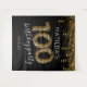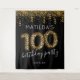 Diversão fundo de photobooth de festa de 100º aniversário com fundo preto trendy, brilho dourado e confetes, 100 balões de hélio de impressão de leopardo, o nome da aniversariante e data.