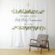 Com delicadas folhas de aquarela e um elegante crucifixo dourado, este fundo de fotografia de primeira comunhão pode ser personalizado com as informações do seu evento especial. Concebido por Thisisnotme©