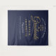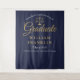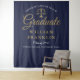 Um elegante pano de fundo para cabine de fotos de formatura com os detalhes dos formandos em tipografia sofisticada sobre um fundo azul-marinho. Concebido por Thisisnotme©