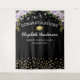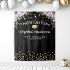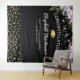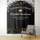 Elegante fundo para cabine de fotos de formatura com um fundo preto moderno, flores de aquarela roxas, um chapéu de graduado, brilho dourado e um modelo de congratulações fácil de personalizar.