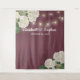 Modelos de fundo de painel de casamento - Elegantes flores de hortênsia em aquarela branca e luzes de corda em fundo vermelho burgundy.