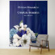 Elegante, romântico e belo detalhe floral em aquarela em azul poeirento, cobalto e creme. Faria uma decoração linda para receber os convidados e também como fundo de parede para fotos.