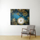 Turquesa, texturizada, fundo steampunk com latão e engrenagens douradas, chave prateada e relógio. Estilo Steampunk.