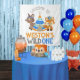 Fundo do primeiro aniversario de Blue Wild One Woodland. Em Laranja Azul, Castanho. Animais Florestais ( Fox and Deer ). Clipart por Impressões de papel de pixel