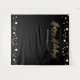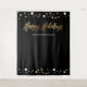 Monte uma cabine de selfie para fotos que também sirva como uma placa de boas-vindas na sua próxima Festa de Natal Corporativa. Letra "Felizes Festas" impressa em dourado para combinar com os convites desta coleção. Confetes dourados e brancos em um fundo preto elegante.
