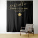 Bandeira de tecido para festa de formatura Preto e Dourado ou Tapeçaria de fundo para cabine de fotos para o formando do Ensino Médio ou Faculdade apresenta uma elegante e moderna caligrafia em negrito sem serifa Ano de 2025 em um modelo minimalista preto e dourado com um sutil efeito de confetes dourados. Insira o texto do ano da turma e personalize com o nome dela, escola e honrarias ou outros detalhes para parabenizar sua graduada trabalhadora.