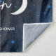 Fundo sobre a lua para uma chuvave de bebê para menino ou menina. Bandeira de festa com tema celestial com uma lua e estrelas em um fundo de galáxia. Ótimo para o photobooth, parede ou decorações de mesa.